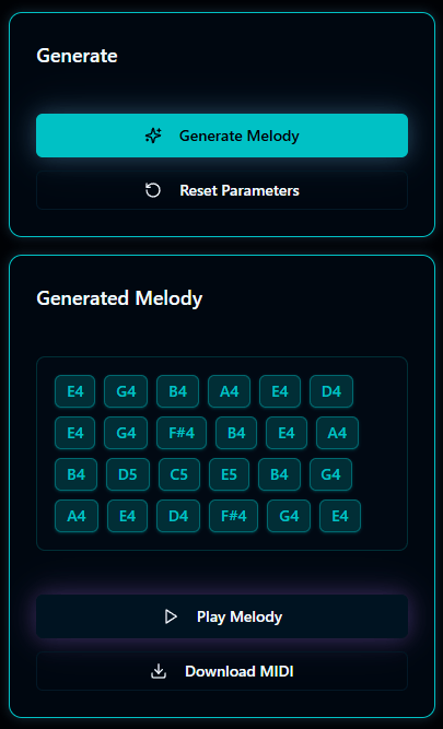 Designing the melody generator showed me how musical logic can be represented as data. Each note becomes a probability, yet the results still evoke emotion. AI can mimic structure, but the creative interpretation remains human. It taught me that algorithms are best used not as composers, but as collaborators that reveal new ways to think about sound.