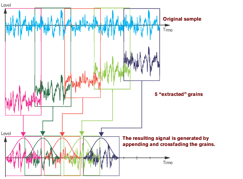 Also in procedural synthesis the grain can be controlled using data streams such as; sensor input, random values, or midi events to create dynamic texture.