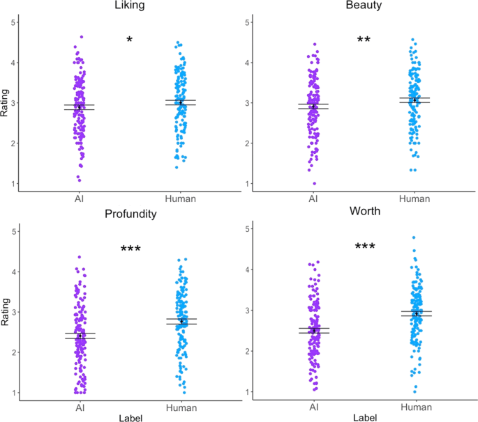 In this image, people are rating AI art vs Human art and I wanted to see if this would transfer over to music generated by AI as well. (From the study found at https://cognitiveresearchjournal.springeropen.com/articles/10.1186/s41235-023-00499-6 )